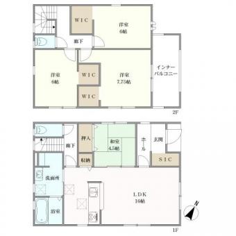 | 備考 | ●2026年2月完成予定の新築戸建●建物延面積:110.96平米の4LDK+3WIC+SIC●北東角地●カースペース2台●全居室2面採光※WIC=ウォークインクローゼット※SIC=シューズインクローゼット ■総戸数/区画数:2 販売戸数/区画数:1 ■建築確認番号:第R07SHC109117号 |