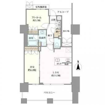 | 間取り | 1LDK+F | 専有面積 | 58.39m2(17.6坪) 壁芯 |