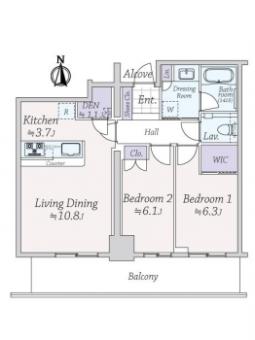 | 間取り | 2LDK | 専有面積 | 63.73m2(19.2坪) 壁芯 |