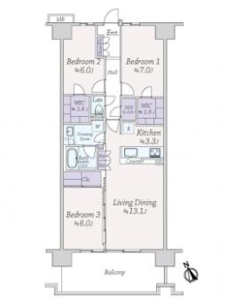 | 間取り | 3LDK | 専有面積 | 82.41m2(24.9坪) 壁芯 |