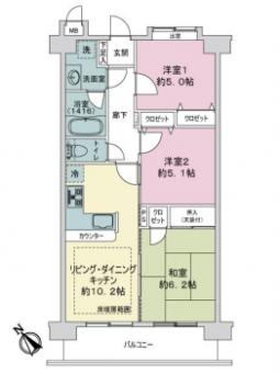 | 間取り | 3LDK | 専有面積 | 59.85m2(18.1坪) 壁芯 |