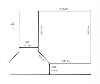 | 接道状況 | 角地 西約7.0m公道、間口:約16.6m 南約5.0m公道、間口:約11.4m | ||
