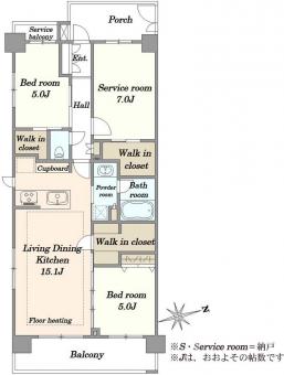 | 備考 | ・サービスバルコニー面積:1.47m2・引渡しは契約後12ヶ月となります。/ポーチ:6.79m2 |