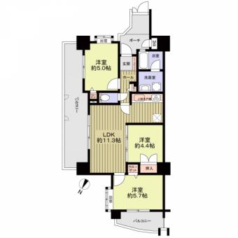 | 間取り | 3LDK | 専有面積 | 58.02m2(17.5坪) 壁芯 |