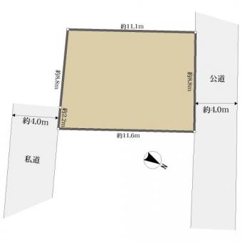| 接道状況 | 二方 北約4.0m公道、間口:約8.8m 南約4.0m私道、間口:約2.2m(位置指定道路) | ||