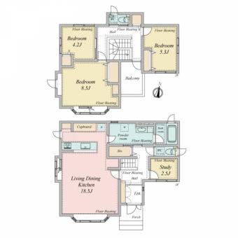 | 土地面積 | 130.00m2(39.3坪) 実測 別途私道負担22.60m2 | 建物延面積 | 105.06m2 |