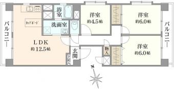 | 間取り | 3LDK | 専有面積 | 64.89m2(19.6坪) |