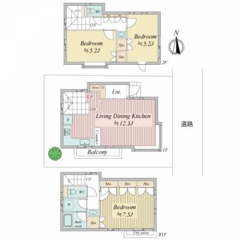 | 土地面積 | 43.53m2(13.1坪) 実測 別途私道負担9.50m2 | 建物延面積 | 80.16m2 |