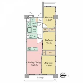 | 間取り | 3LDK | 専有面積 | 62.91m2(19.0坪) 壁芯 |