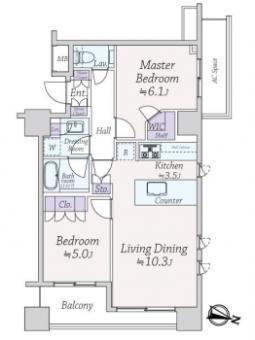 | 間取り | 2LDK | 専有面積 | 56.86m2(17.2坪) 壁芯 |