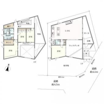 | 接道状況 | 角地 東約4.5m公道、間口:約8.9m 南約4.5m公道、間口:約9.1m | ||