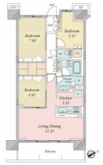 | 間取り | 3LDK | 専有面積 | 72.45m2(21.9坪) 壁芯 |