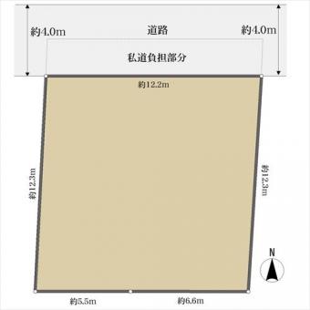 | 接道状況 | 一方 北約4.0m私道、間口:約12.2m(位置指定道路) | ||