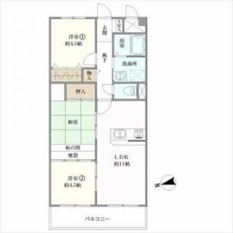 | 間取り | 3LDK | 専有面積 | 61.60m2(18.6坪) 壁芯 |