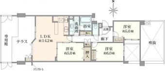 | 備考 | リフォーム:キッチン・バス・トイレ・洗面台交換 2025.8完了 ・駐車場使用料:17,000円~19,000円/月・上記バルコニー面積はテラス面積になります/専用庭:11.47m2/トランクルーム:0.29m2/ポーチ:2m2 |
