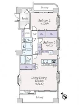 | 間取り | 2LDK | 専有面積 | 77.62m2(23.4坪) 壁芯 |