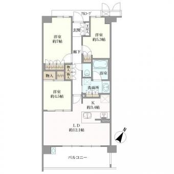 | 間取り | 3LDK | 専有面積 | 73.52m2(22.2坪) 壁芯 |