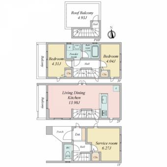 | 土地面積 | 42.51m2(12.8坪) 登記簿 | 建物延面積 | 68.64m2 |