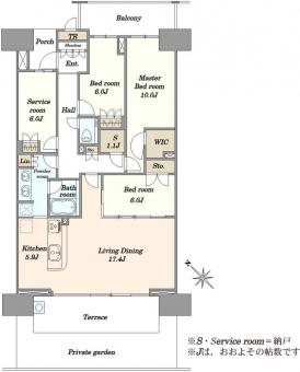 | 備考 | トランクルーム面積:0.90m2(専有面積に含む)/専用庭:21.37m2/テラス:13.8m2/ポーチ:3.52m2駐車場空状況:2025年9月確認/修繕積立金基金:626428079万円 |