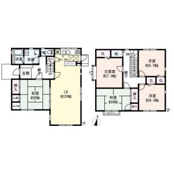 | 備考 | 大和ハウス工業(株)施工 / 5LDK リビングダイニング・バルコニー南向き / リビングダイニング・キッチン約23.2帖 前面道路幅員約5.0m、全居室6帖以上 / TVモニター付きインターホン、オートバス(自動湯はり、追炊き機能) / 3面鏡洗面化粧台、温水洗浄暖房便座(1階トイレ、2階トイレ) |