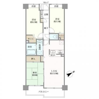 | 間取り | 3LDK+WIC | 専有面積 | 68.64m2(20.7坪) 壁芯 |