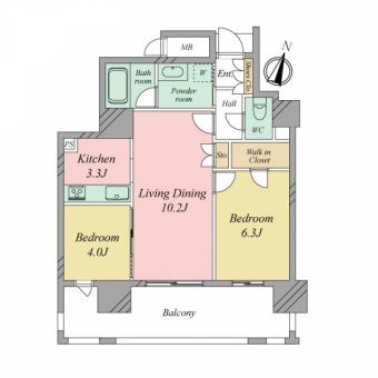 | 間取り | 2LDK | 専有面積 | 54.55m2(16.5坪) 壁芯 |