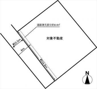 | 備考 | 前面道路が幅員4m未満のため、道路復元(約8.4平米)が必要となります。(※対向地所有者と協議要) |