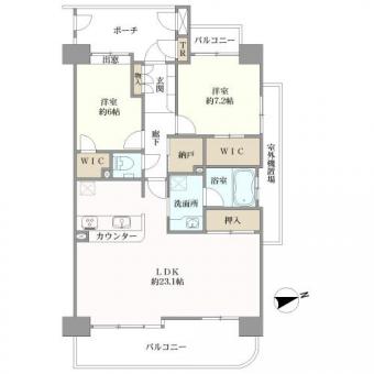 | 間取り | 2SLDK+WIC | 専有面積 | 85.02m2(25.7坪) 壁芯 |