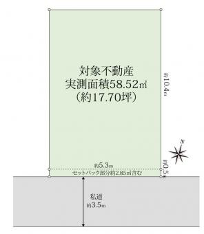 | 土地面積 | 58.52m2(17.7坪) 実測 別途私道負担17.15m2 | ||