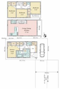| 土地面積 | 60.24m2(18.2坪) 登記簿 別途私道負担15.34m2 | 建物延面積 | 93.77m2 |