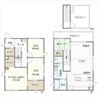 | 備考 | 家具・調度品は販売価格に含まれません。カースペース2台(普通車2台)。S=サービスルーム(納戸)。本建物の登記上の建物構造は鉄骨造ですが、実際の構造は軽量鉄骨造となります。WICはウォークインクローゼット。 |