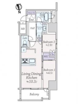 | 間取り | 2LDK | 専有面積 | 45.49m2(13.7坪) 壁芯 |