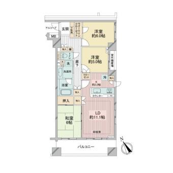 | 間取り | 3LDK | 専有面積 | 77.00m2(23.2坪) 壁芯 |