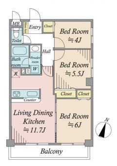 | 間取り | 3LDK | 専有面積 | 58.56m2(17.7坪) 壁芯 |