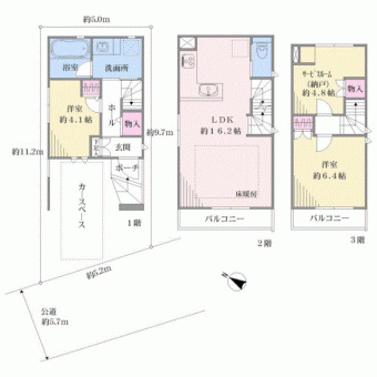 | 土地面積 | 52.76m2(15.9坪) 登記簿 | 建物延面積 | 74.11m2 |