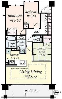 | 間取り | 3LDK | 専有面積 | 74.13m2(22.4坪) 壁芯 |