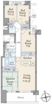 | 間取り | 4LDK | 専有面積 | 77.37m2(23.4坪) 壁芯 |