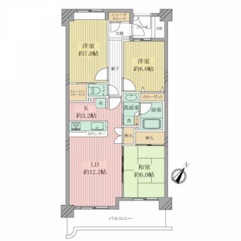 | 間取り | 3LDK | 専有面積 | 70.65m2(21.3坪) 壁芯 |
