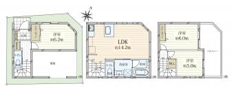 | 土地面積 | 52.40m2(15.8坪) 登記簿 別途私道負担11.17m2 | 建物延面積 | 78.66m2 |