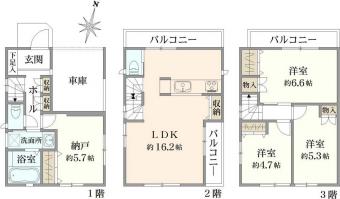 | 土地面積 | 55.60m2(16.8坪) 登記簿 | 建物延面積 | 97.08m2 |