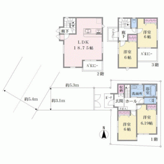 | 土地面積 | 90.05m2(27.2坪) 実測 | 建物延面積 | 105.98m2 |