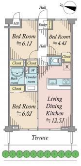 | 間取り | 3LDK | 専有面積 | 63.60m2(19.2坪) 壁芯 |