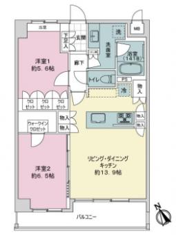 | 間取り | 2LDK | 専有面積 | 62.46m2(18.8坪) 壁芯 |