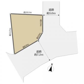 | 接道状況 | 角地 南約7.2m公道、間口:約8.6m 東約5.0m私道、間口:約5.3m(位置指定道路) | ||