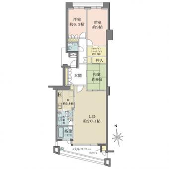 | 間取り | 3LDK | 専有面積 | 104.86m2(31.7坪) 壁芯 |