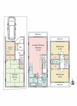 | 土地面積 | 65.97m2(19.9坪) 登記簿 | 建物延面積 | 98.53m2 |