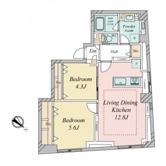 | 間取り | 2LDK | 専有面積 | 57.27m2(17.3坪) 壁芯 |