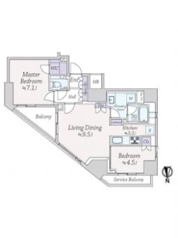 | 間取り | 2LDK | 専有面積 | 60.91m2(18.4坪) 壁芯 |