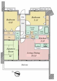 | 間取り | 3LDK | 専有面積 | 68.46m2(20.7坪) 壁芯 |