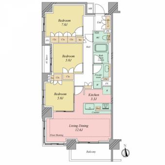 | 間取り | 3LDK | 専有面積 | 76.44m2(23.1坪) 壁芯 |